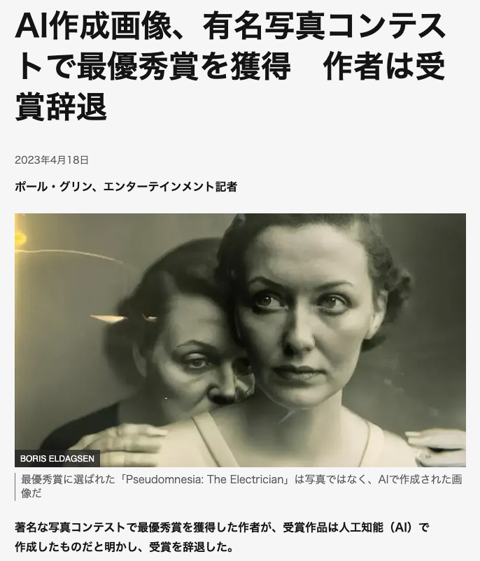 「AI画像で作ったものが写真コンテストで入賞」するなど